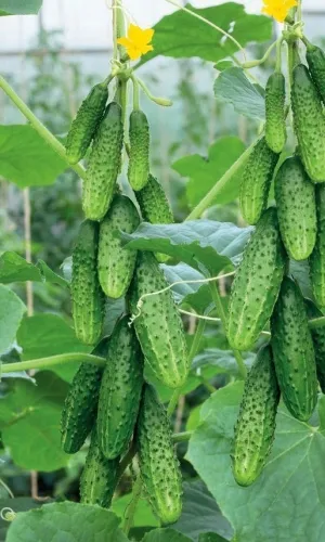 Скороспелый, с пучковой завязью, самоопыляемый, очень высокоуро­жайный гибрид для открытого грунта и всех видов теплиц. Зеленцы цилиндрические, бугор­чатые, длиной 9-13см, хрустящие, с тонкой кожицей, без горечи и пустот, очень быстро на­растают после очередного сбора. Универсального использования. При засолке и консервировании огурчики остаются вкусными и хрустящими. Обладает устой­чивостью к мучнистой росе. Хорошо переносит резкие перепады температурного и водного режима.